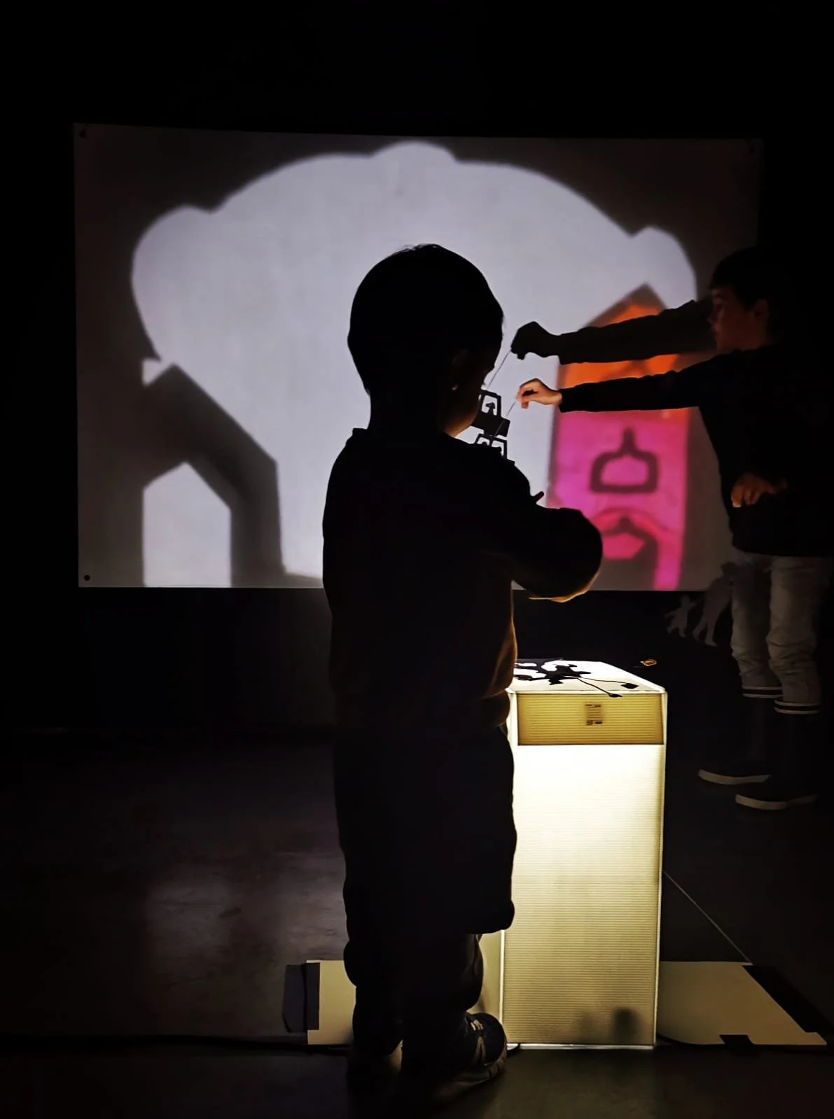 Amarbarì is a shadow art performance designed to envelop a small audience of “travelers”. It's a cosy, colorful installation in which adults and children alike are invited to discover different worlds, through the use of sounds, animated lights and shapes. These worlds are born in the shadows, but need light in order to be explored.